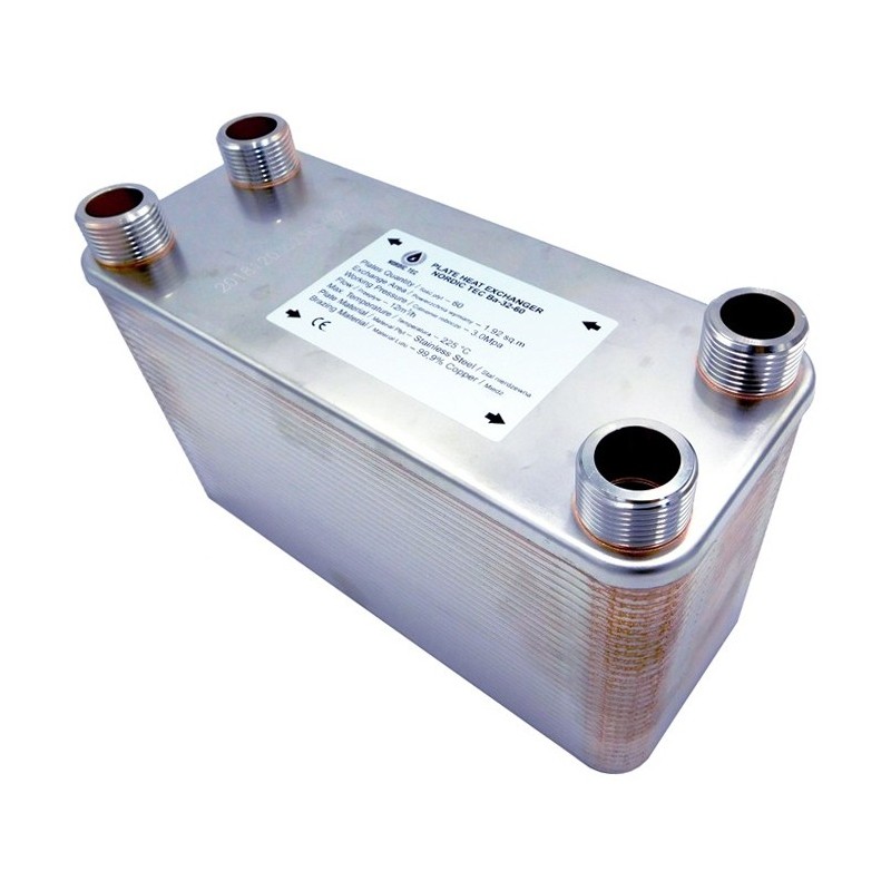 Der Wärmetauscher in diesem Angebot ist eine relativ große Einheit dieser Art und verfügt über 60 Platten, die eine Gesamtfläche von fast 7 m² bilden. Das Gerät wiegt inklusive Verpackung ca. 43 kg. Es hat große 2-Zoll-Anschlüsse und zeichnet sich durch einen relativ geringen Strömungswiderstand aus. Sehr effizient und für den Einsatz auch in großen öffentlichen Gebäuden geeignet.