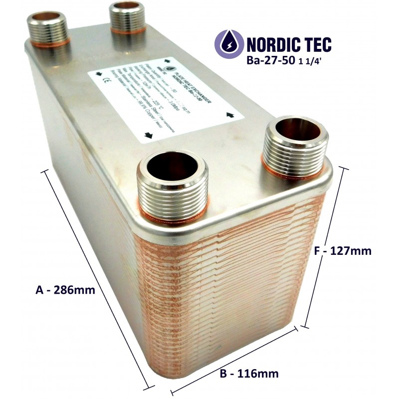 Technische daten - Plattenwärmetauscher 1 1/4 - Nordic Tec Ba-27-50: