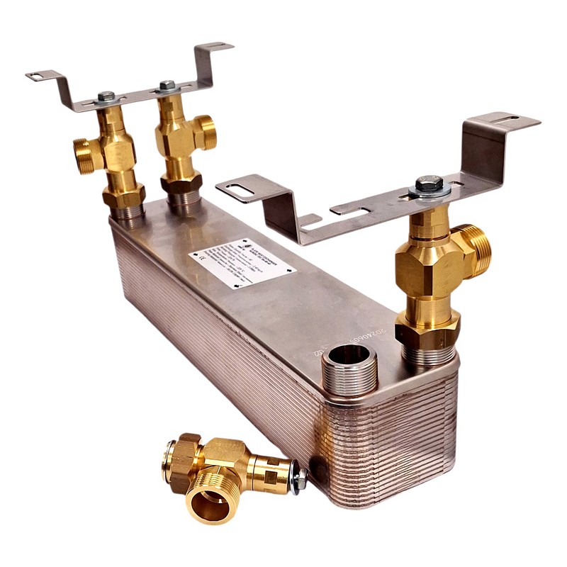 Jede Heizvorrichtung - egal ob es sich um eine Wärmepumpe oder einen Heizkessel jeglicher Art handelt, muss ausreichend von der Wärmetauscherfläche eines Plattenwärmetauschers bedient werden, um effizient in einem System mit Wärmetauscher zu arbeiten. Dies ist natürlich eine Vereinfachung, bei der wir nicht näher auf die Vergleiche der Wärmeübertragungskoeffizienten eingehen, d. h. die Umrechnung der Oberfläche in spezifische Leistung. Ein Wärmetauscher mit einer Oberfläche von 2,4m2 ist bereits groß genug, um in einigen Wärmepumpenanlagen verwendet zu werden, aber es ist immer wichtig, eine korrekte Auswahl des Wärmetauschers durchzuführen.