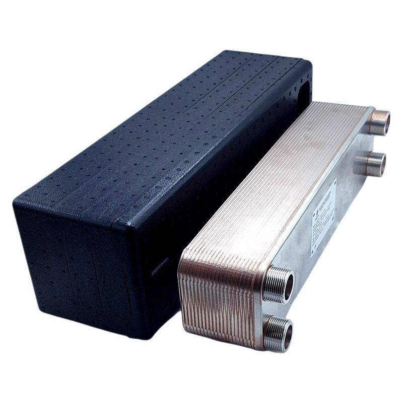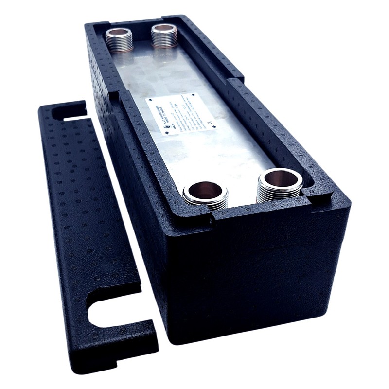 Der Plattenwärmetauscher Ba-60-40 im Komplettset (mit Isolierung und Wandhalterung).