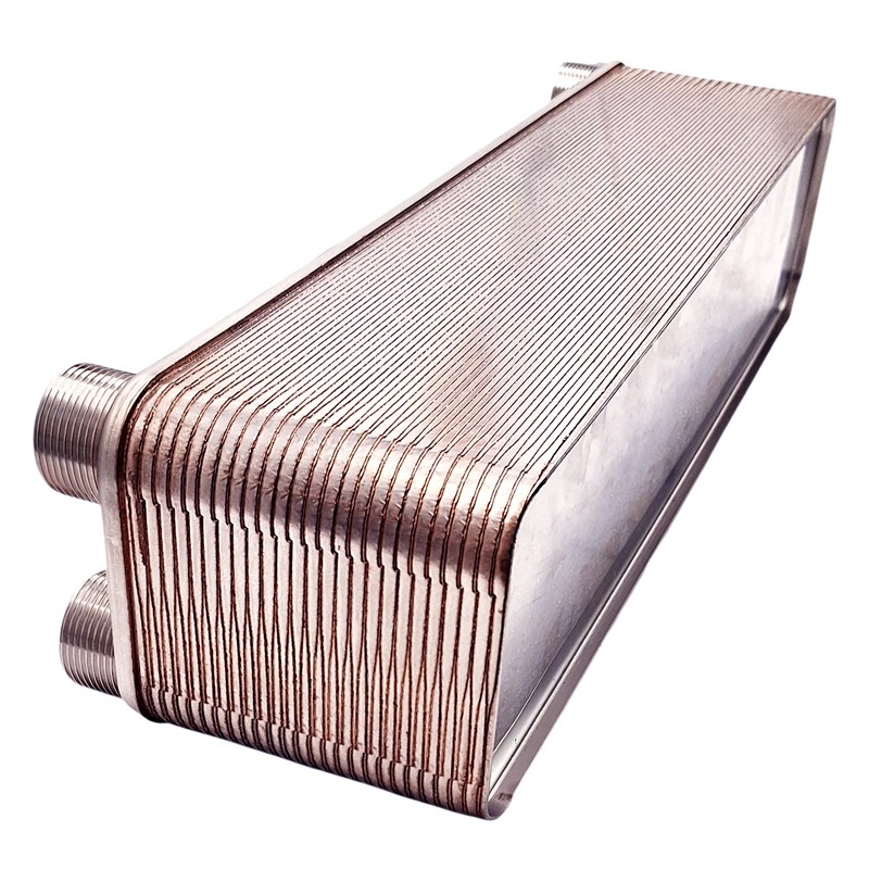 Am häufigsten wird er jedoch als Plattenwärmetauscher für monoblock Wärmepumpen verwendet - also als Wärmetauscher für Wasser und Glykol, wenn eine Monoblock Wärmepumpe mit dem System verbunden wird. Er bietet ausgezeichnete Leistungsparameter für die Handhabung solcher Geräte, insbesondere eine optimale Wärmeaustauschfläche. Indem wir dieses Produkt als Wärmetauscher für Wärmepumpen bewerben, möchten wir klarstellen, dass es kein Wärmetauscher für Freon oder gasförmige Medien ist und nicht mit Medien arbeiten sollte, die Drücke über 30 bar erfordern.