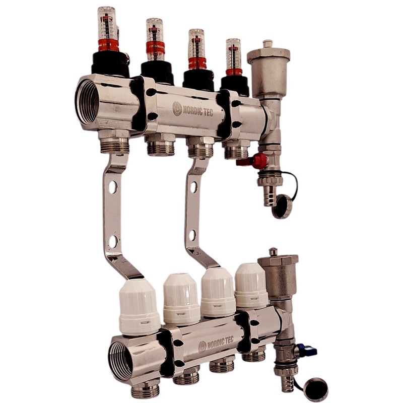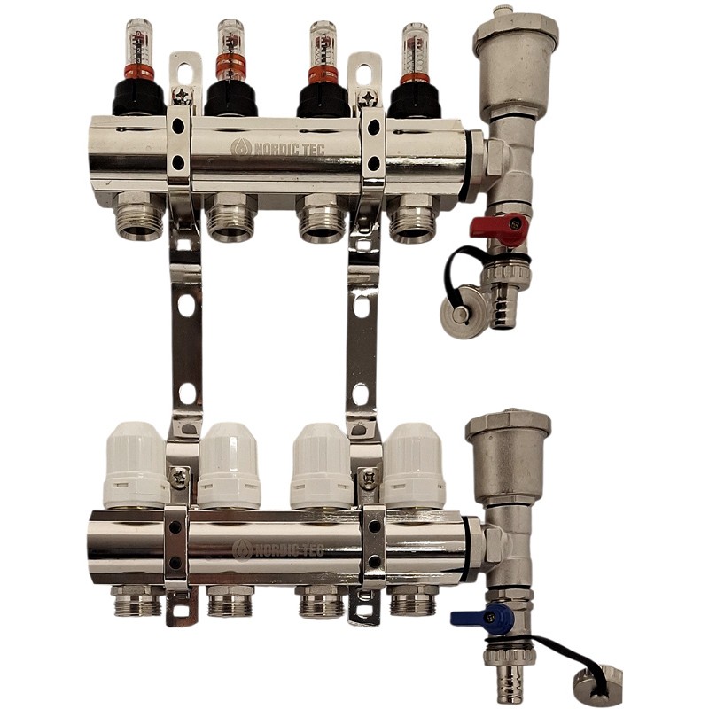 Der Verteiler für Fußbodenheizung von Nordic Tec für 4 Kreisläufe