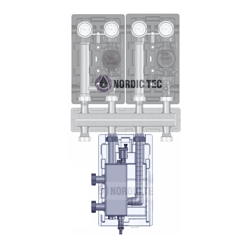 Die hydraulische Weiche ist hauptsächlich für Verteiler und Pumpengruppen von Nordic Tec vorgesehen. Aufgrund der klassischen Abmessungen und Anschlussabstände eignet sie sich jedoch sehr häufig auch hervorragend für Kesselverteiler anderer Hersteller.
