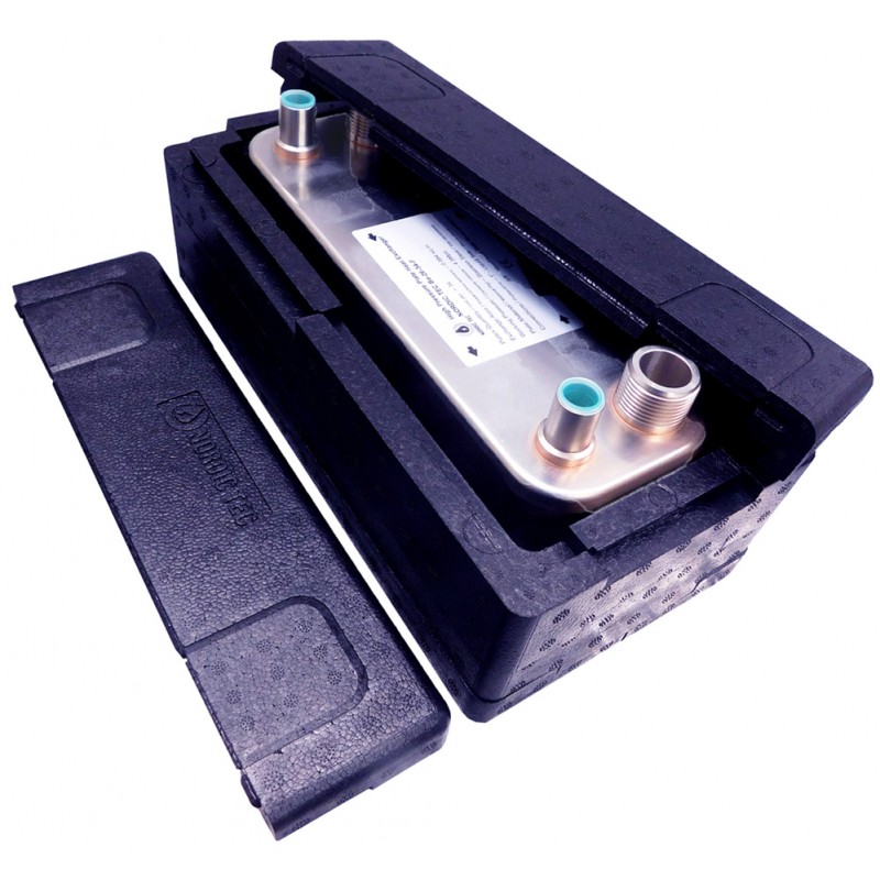 Ein 70-Platten-Wärmetauscher Ba-26-70-F für Kältemittel & Wasser - ist optional auch mit Isolierung erhältlich.
