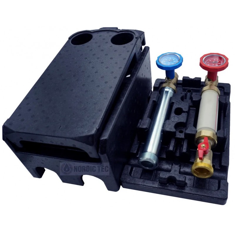 - Jede Nordic Tec Pumpengruppe ist mit einem Rückflussverhinderer ausgestattet, der sich unter dem blauen Thermometer, also auf der kalten Seite, befindet.