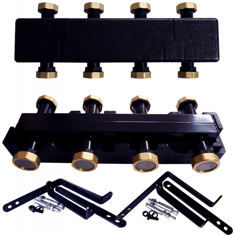- Aufteilung der Versorgung auf mehrere Heizkreise (in diesem Fall 2 oder 3) – der Kupplungs-Verteiler verfügt über eine entsprechende Anzahl von Ausgangsstutzen (z.B. 2, 3, 4), an die Pumpengruppen angeschlossen werden können. Alles ist auf den beigefügten Produktfotos zu sehen.