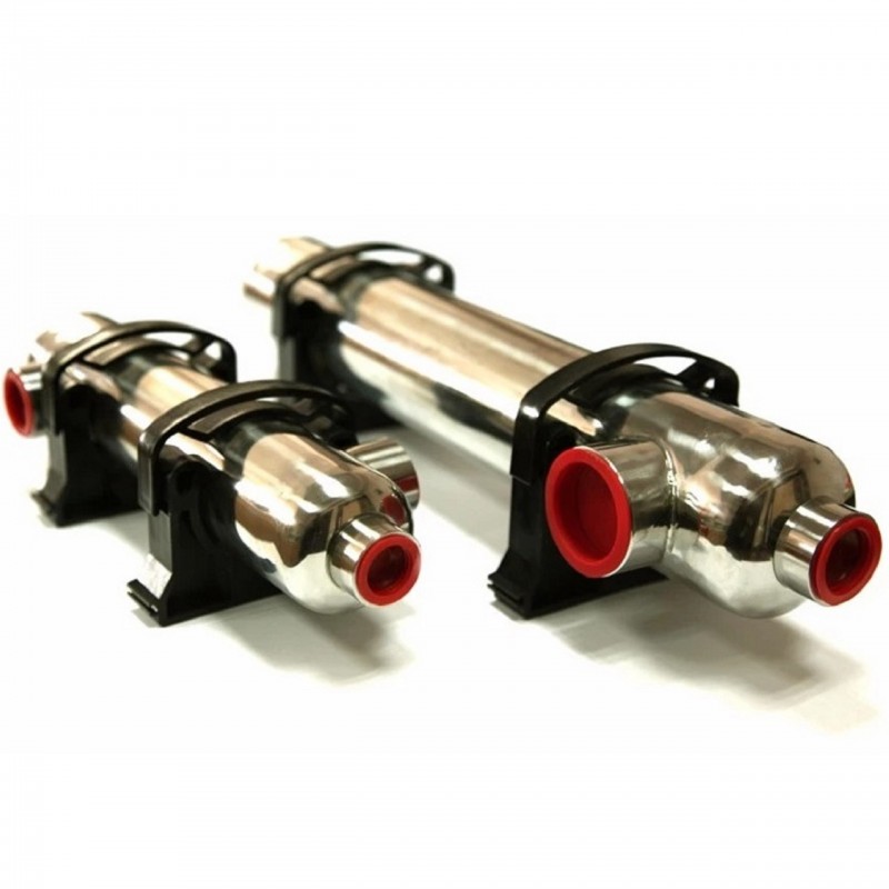Rohrbündelwärmetauscher B360 - Poolwärmetauscher mit Halterungen.