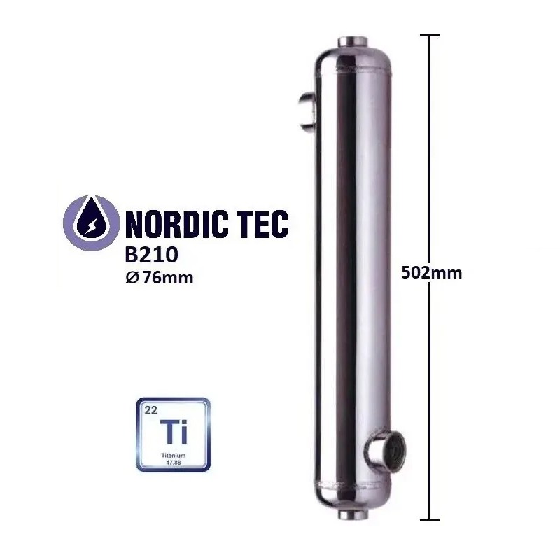 Heizgerät - Wärmetauscher für einen 60 kW Pool, aus Titan - einem Material, das beständig gegen hohe Chlor- und Poolchemikalienkonzentrationen ist, aber vor allem gegen Salz. Dies ist ein Wärmetauscher für salziges Wasser. Der Gerätetyp ist ein Rohrwärmetauscher. Nordic Tec Pool-Wärmetauscher können mit den meisten auf dem europäischen Markt erhältlichen Wärmequellen arbeiten, wie Wärmepumpen, Gasheizkesseln, wasserführenden Kaminen und anderen. Es ist auch zulässig, den Wärmetauscher als Komponente zur Beheizung des Pools mit Solarkollektoren zu verwenden, die mit Glykol gefüllt sind. Glykol stellt keine Gefahr für unser Gerät dar.