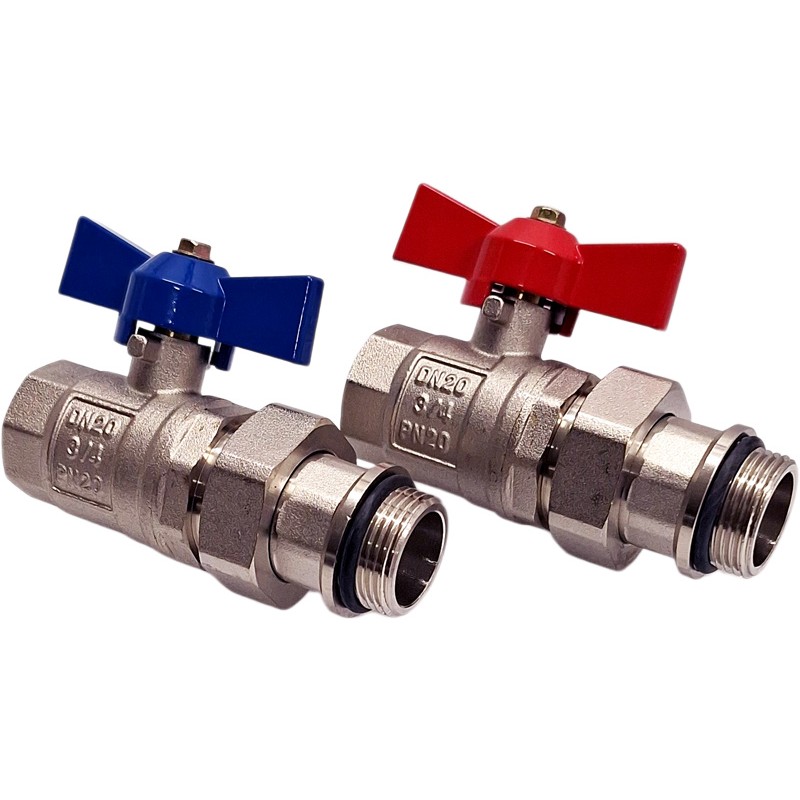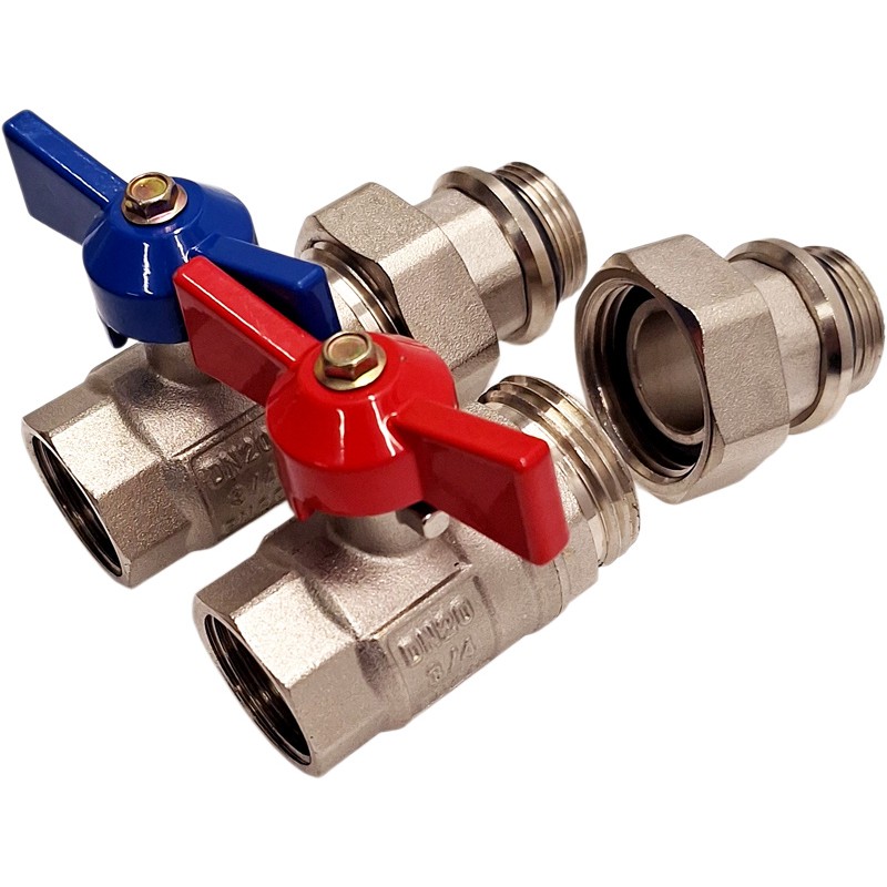 Set - 2 Stück - Absperrventile Kugelhahn-Set 3/4", mit Verschraubungen